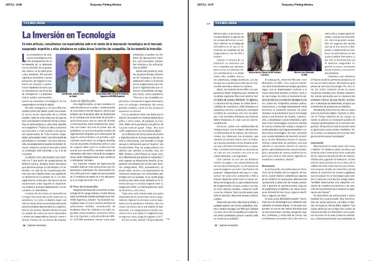 El medio especialista MERCADO ASEGURADOR, entrevistó a Marcelo Linari Micheletti sobre "La inversión en tecnología".